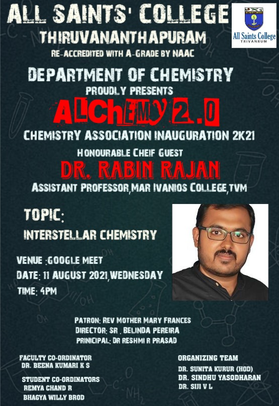 Inauguration of Chemistry Association 2025-26 @ All Saints' College 19th August, 10 am
