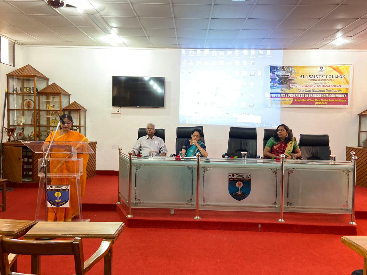 An one day National seminar on ‘Transgender problems and prospects’ organized by the Department of History and Political Science, All Saints’ College, Thiruvananthapuram in collaboration with the Association of Third World Studies, South Asia chapter (ATWS-SAC), on 29th January turned out to be the scene of candid revelations of the anguish, the agony and the determination on the part of the transgender to fight the way to social justice and recognition. Mrs. Surya Ishaan, Member, Kerala State Transgender Justice Board, who gave the inaugural address, spoke vividly about the physical, psychological, social and emotional problems faced by the transgender in family, educational institutions and the public domain. She also exposed the hurdles on the path of struggles of transgender towards social justice and equality of genders. Report
