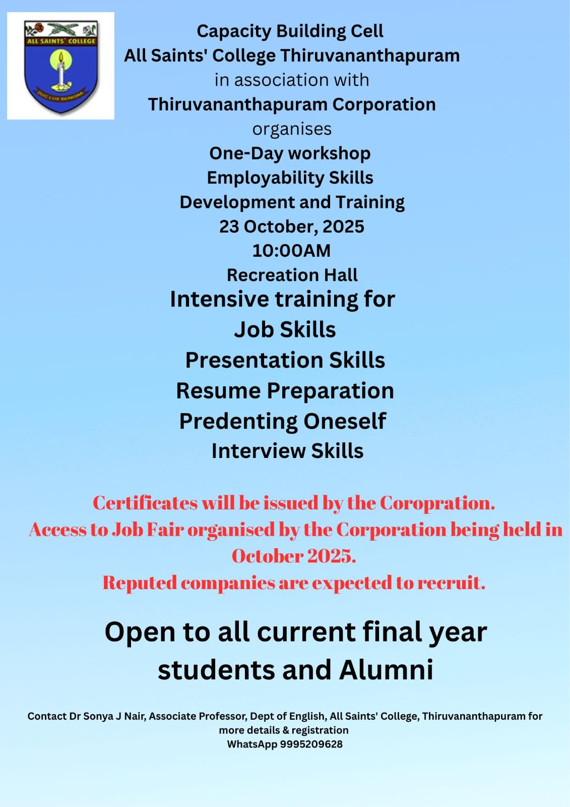 One Day Workshop on Employability Skills Development & Training @ Recreation Hall All Saints' College