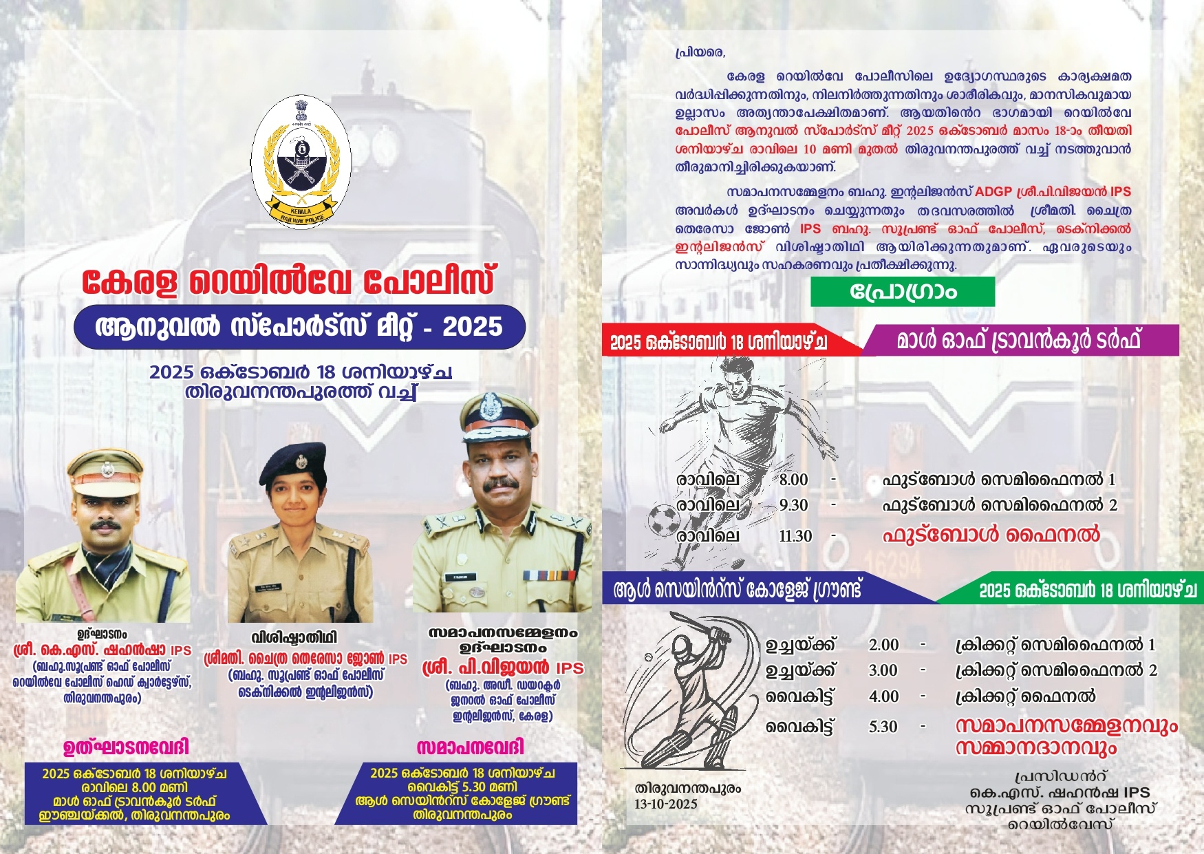 Railway Police Kerala - Annual Sports Meet 2025 Closing Ceremony @ All Saints' College Ground on 18th Oct 2025, 5.30pm