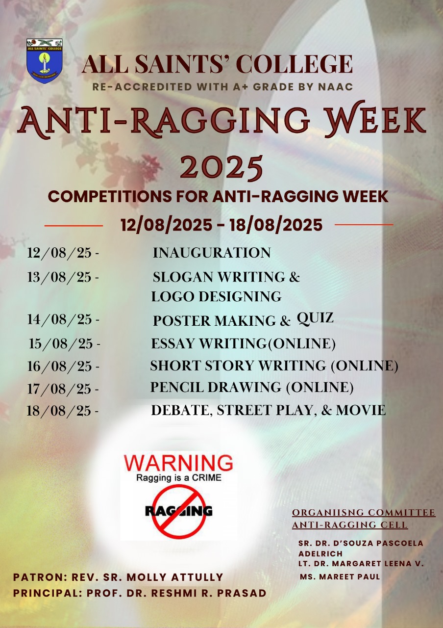 Anti Ragging Week 2025 Competitions @ All Saints' College from 12 Aug 2025 to 18 Aug 2025
