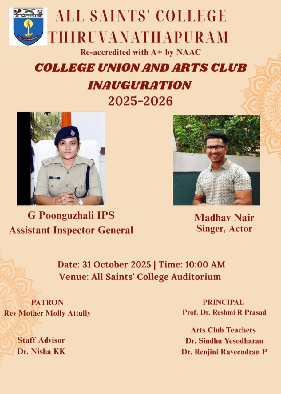College Union & Arts Club Inauguration 2025-2026 @All Saints' College Auditorium on 31st October 2025, 10am
