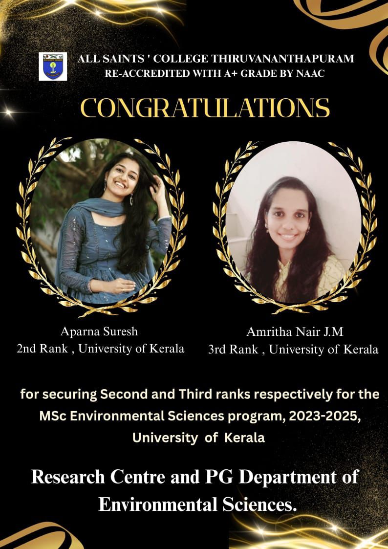 University of Kerala- 2nd & 3rd Rank in MSc Environmental Studies - Where Goals Meet Glory!