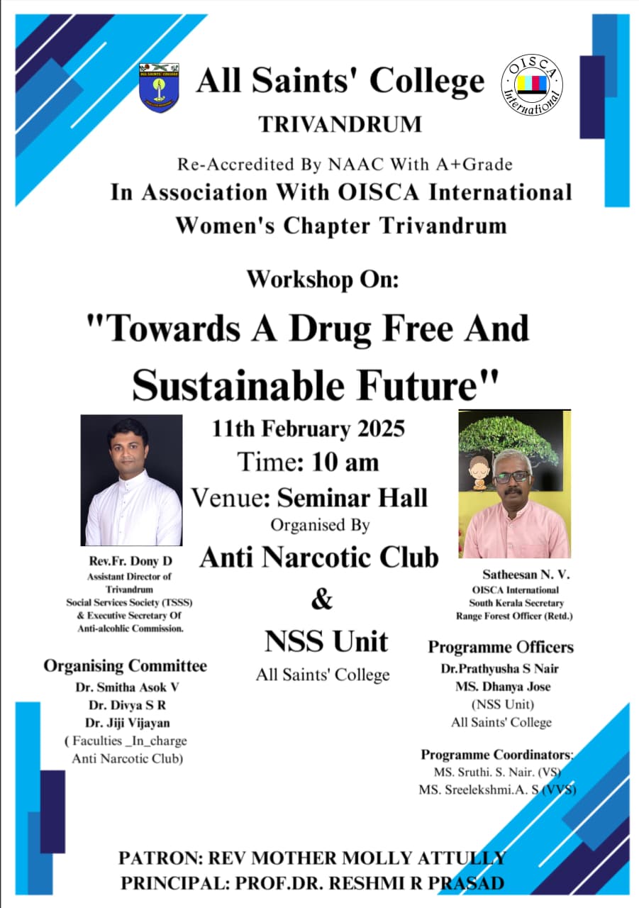 Organized by the NSS Unit of All Saints' College, Thiruvananthapuram in association with Anti Narcotics Cell
